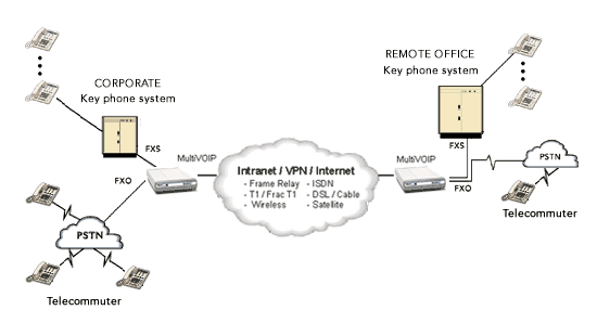 由於 Multi-VoIP 系統能連接公司的 PBX(電話交換機)系統,這樣就可以開通給公司內的全部員工使用,只要拿起桌上的電話就可以收打長途電話了。使用方面非常方便,大家所面對的是普通電話而不是電腦,所以無需重新學習。 Multi-VoIP